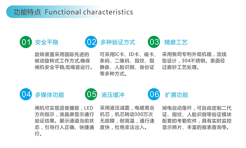 C)闸机上配有语音功能;闸机配备显示功能,可加装人像显示液晶屏;